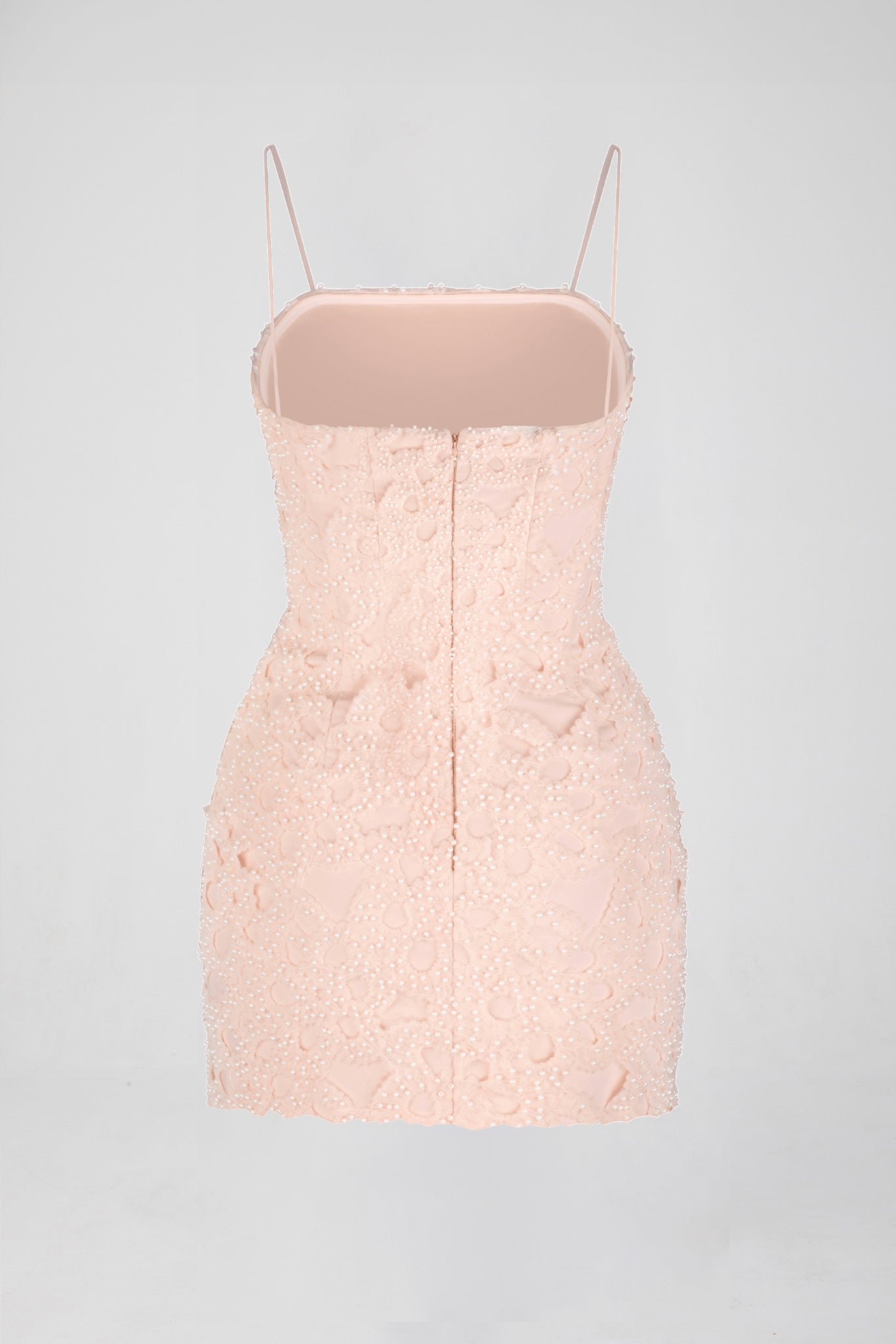 The Maple Mini features a classic silhouette elevated through an embellished fabrication. A straight neckline sits streamline with thin straps and a very mini length hem with an invisible zip closure at centre back.