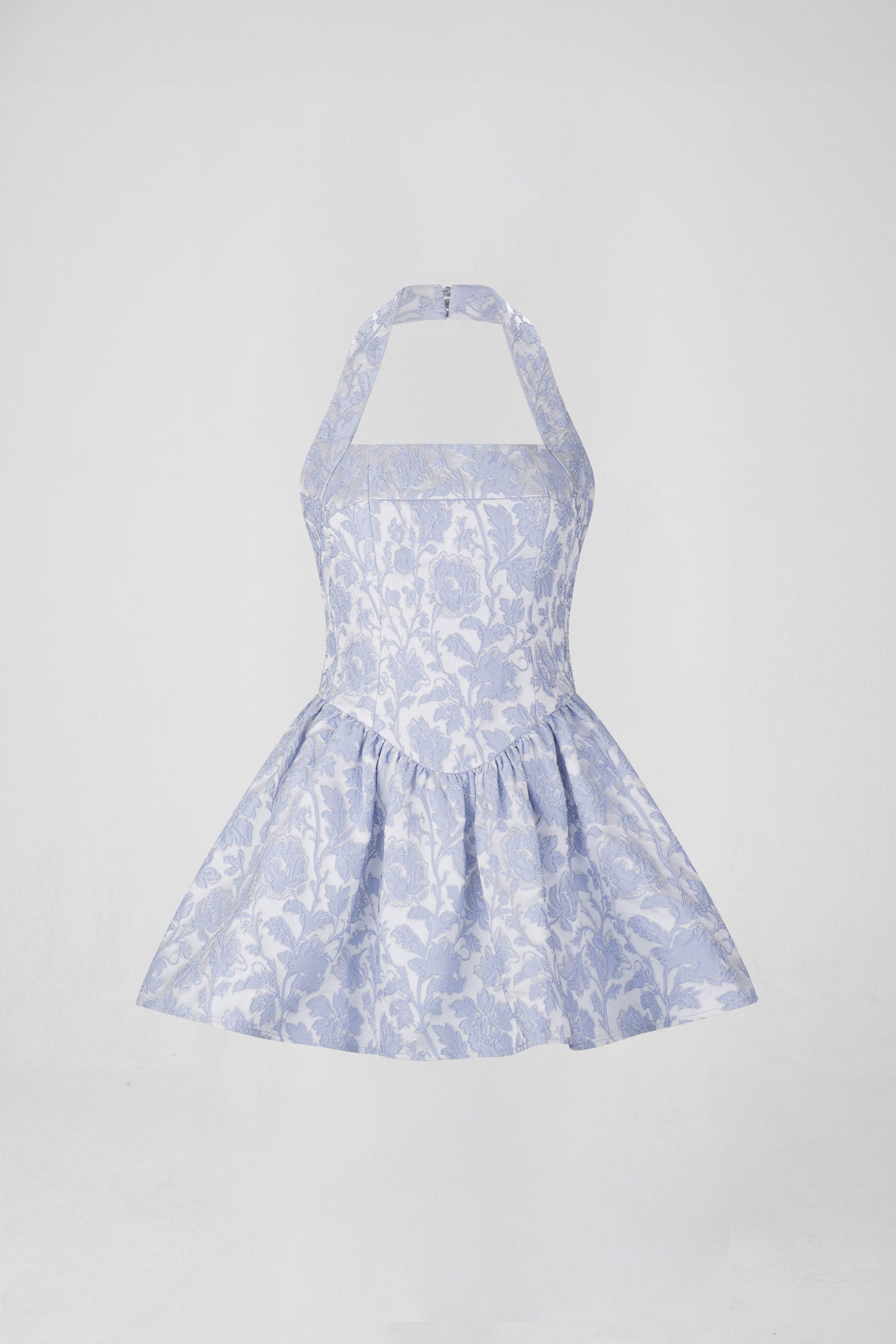 Designed in to the silhouette of the season, the Winnie Halter Dress features a floral jacquard fabrication, centre back invisible zip closure and mini length, a-line skirt.