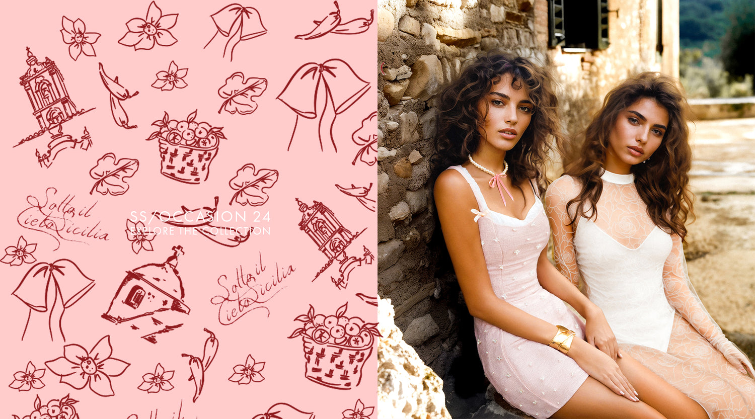 AFFECTIONATELY TITLED SOTTO IL CIELO SICILIA, OR SS24/25 COLLECTION HAS BEEN BROUGHT TO LIFE THROUGH AN EDITORIAL MARKETING CAMPAIGN CREATED BY A TEAM OF AI ARTISTS.
